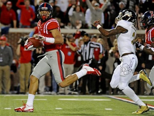 Ole Miss tight end Evan Engram gashed the Mississippi State secondary with 5 catches for 176 yards. Ole Miss upset the Bulldogs and knocked them out of contention for the playoffs.