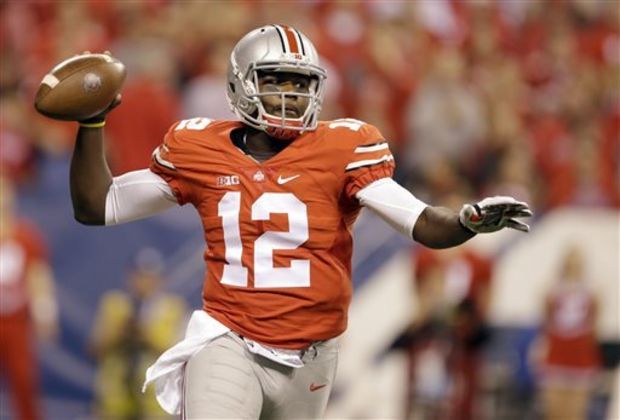 Cardale Jones, QB, RS Soph (6-5, 250): Was the 3rd string QB in September. First career start. Big body. Impressive arm strength and throws a pretty deep ball. Teammates call him “12 gauge” because of his arm strength. Showed great poise on a huge stage. Has improved his accuracy. Showed a good ability to check the ball down to his 2nd and 3rd receivers. Protects the ball. Doesn’t have great speed, but runs with power. Takes on tacklers. Good football IQ. Throws well on the run. Completed 12 of 17 for 257 yards and 3 TD. Ran 8 times for 9 yards.
